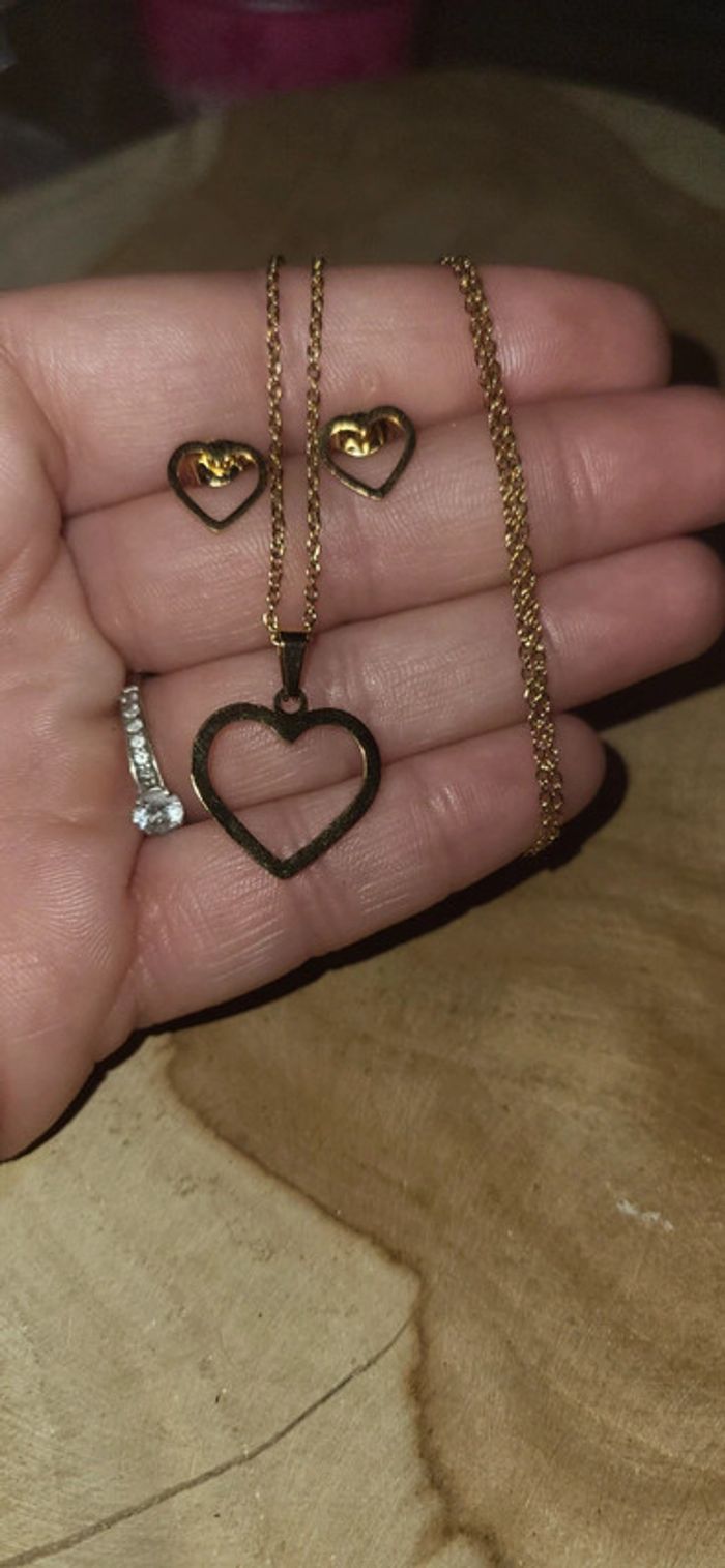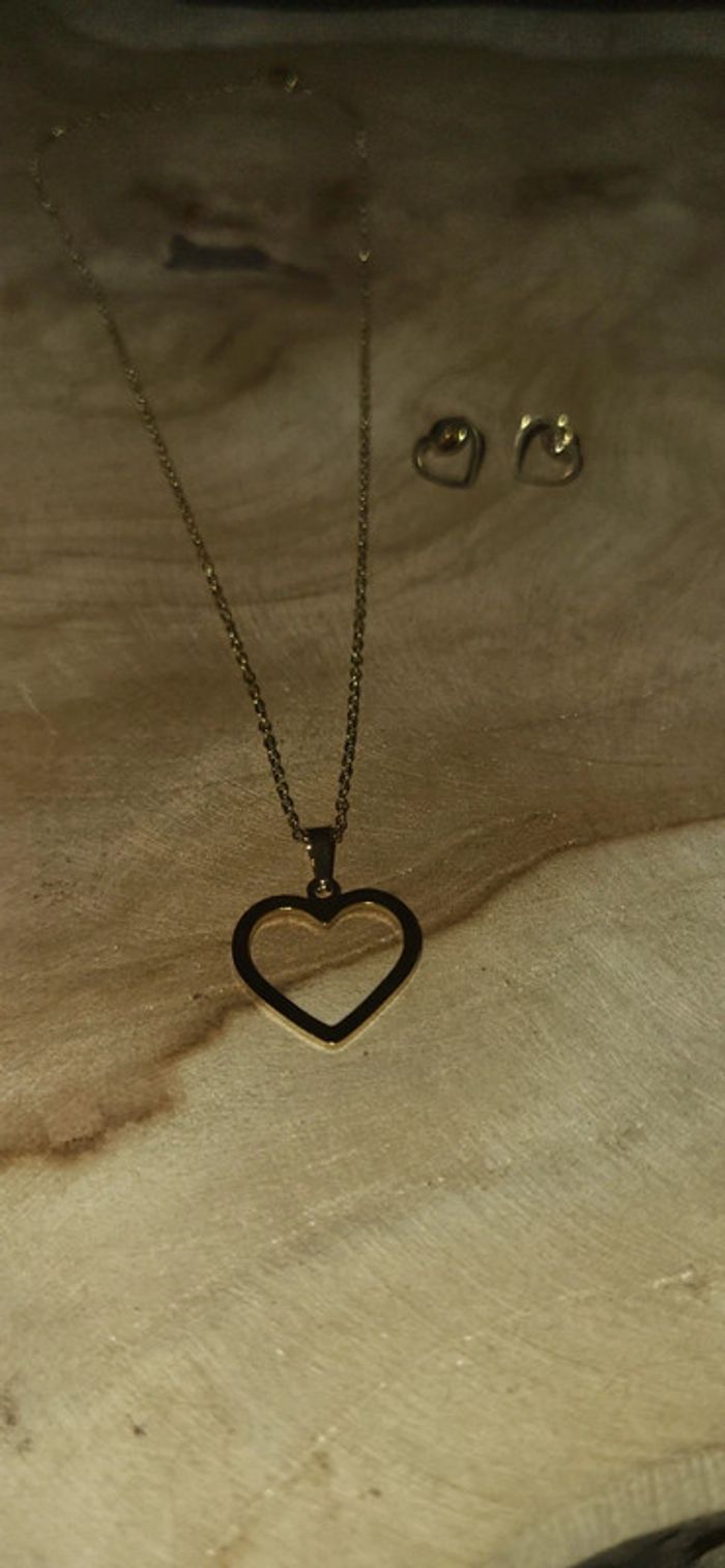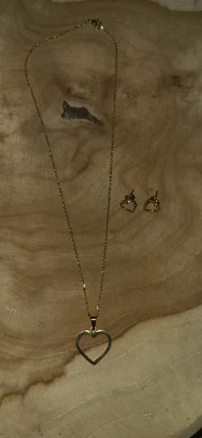 Parure bijoux coeur neuf jamais porté Collier et ses boucles d'oreilles assorties . En cœur. Couleur doré. #a2life_bijoux