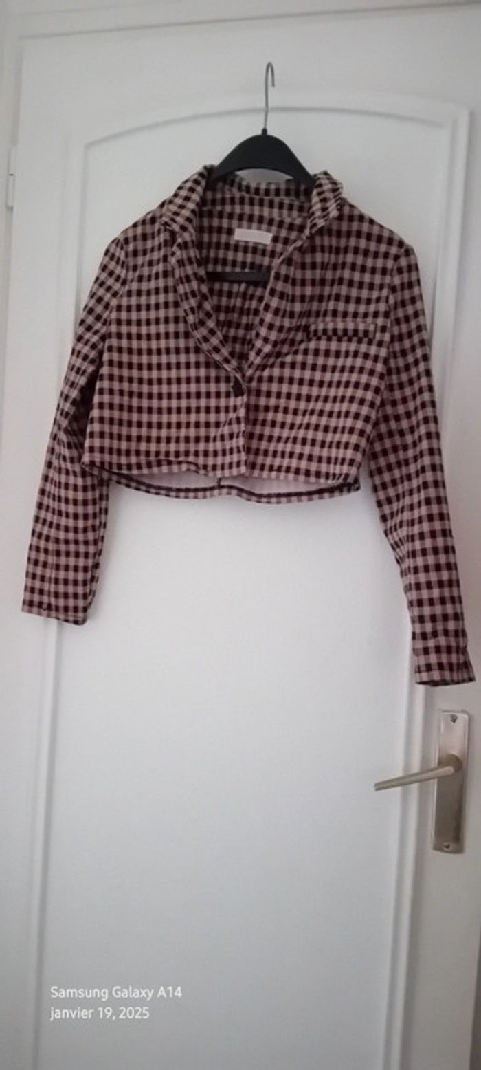 Veste blazer courte motif carreaux pied de poule rose femme 36 primark - photo numéro 14