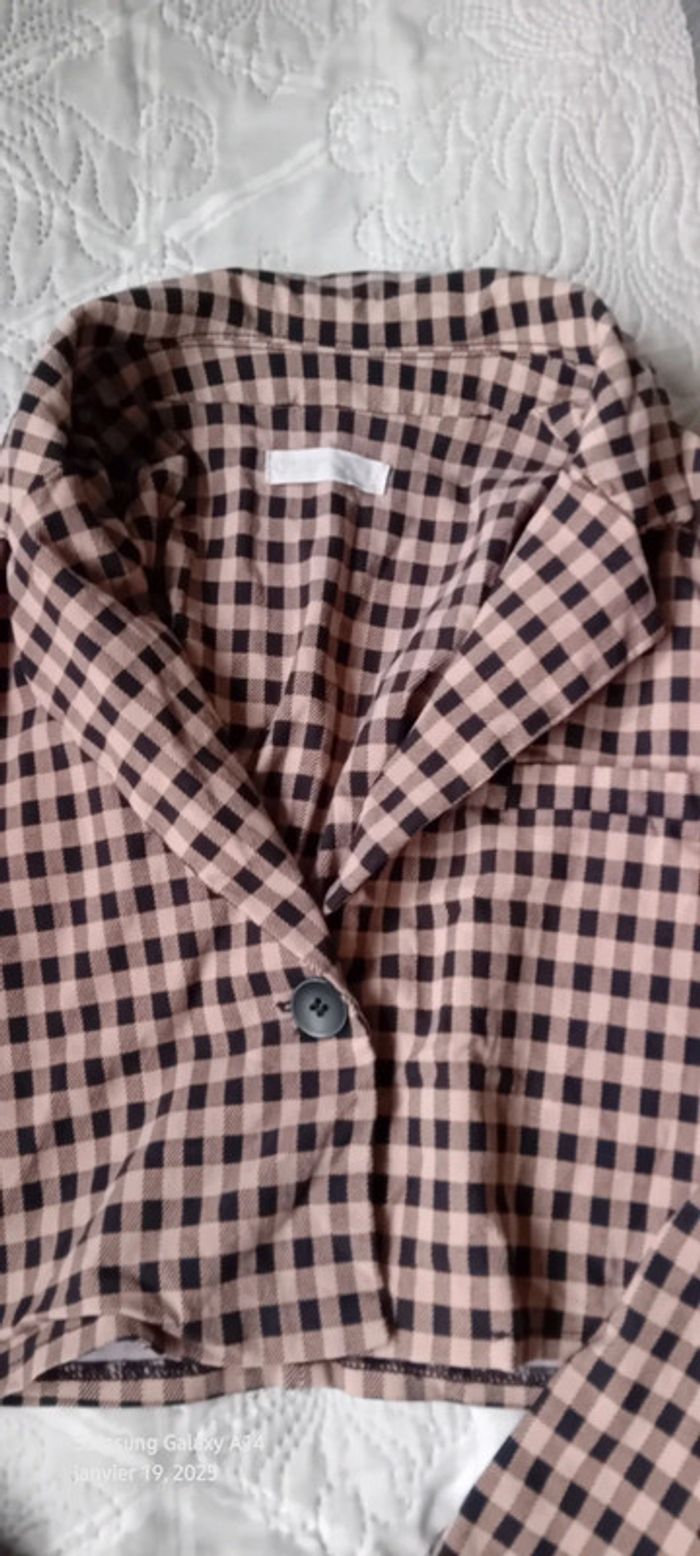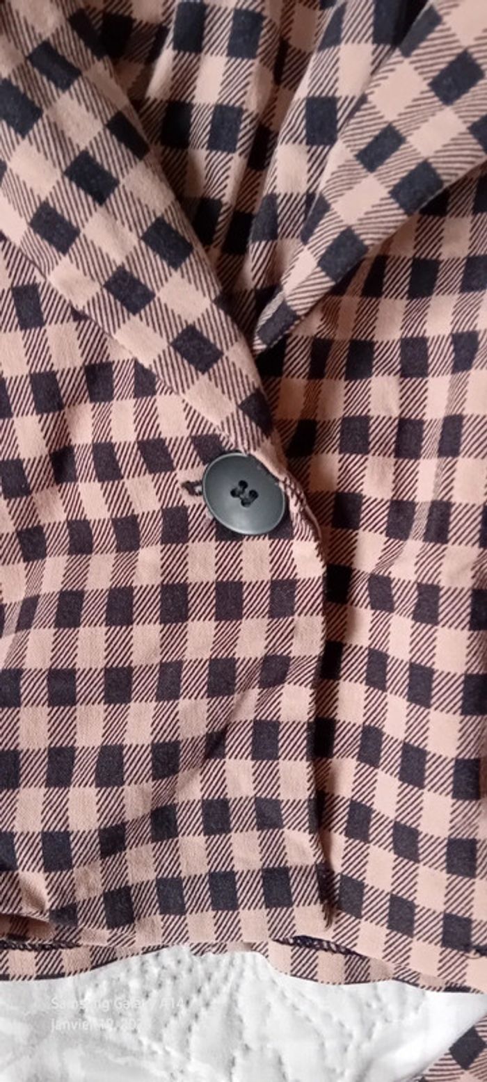 Veste blazer courte motif carreaux pied de poule rose femme 36 primark - photo numéro 15