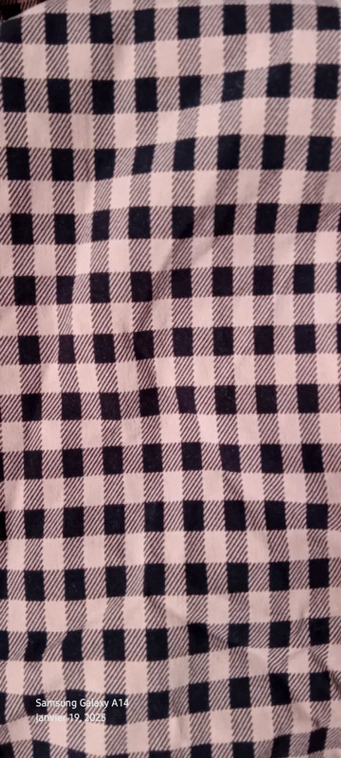 Veste courte en coton polyester et elastanne matière strech extensible motif style pied de poule à carreaux rose et noir fermeture avec un bouton fausse poche devant longueur 40 cm largeur aisselles à aisselles 47 cm largeur épaules 36 cm longueur manches 55 cm très peu portée en très bon état #midole #midolefemme #midolefemme36 #vestefemme36 #motifpieddepoule #motifcarreaux #primark #vesteacarreaux