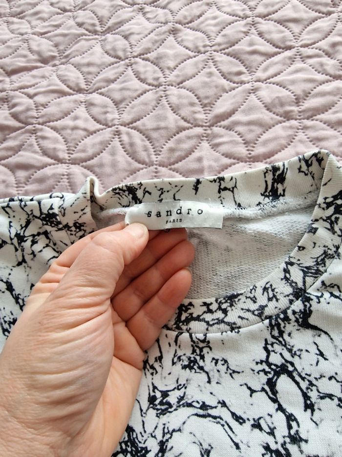 Sweat marbre blanc / noir SANDRO Homme femme xs soit 34 , se porte large