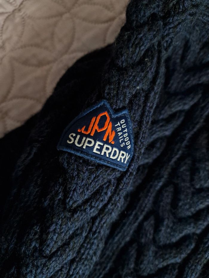Pull en laine tressé, état impeccable SUPERDRY Couleur marine , xs soit 34