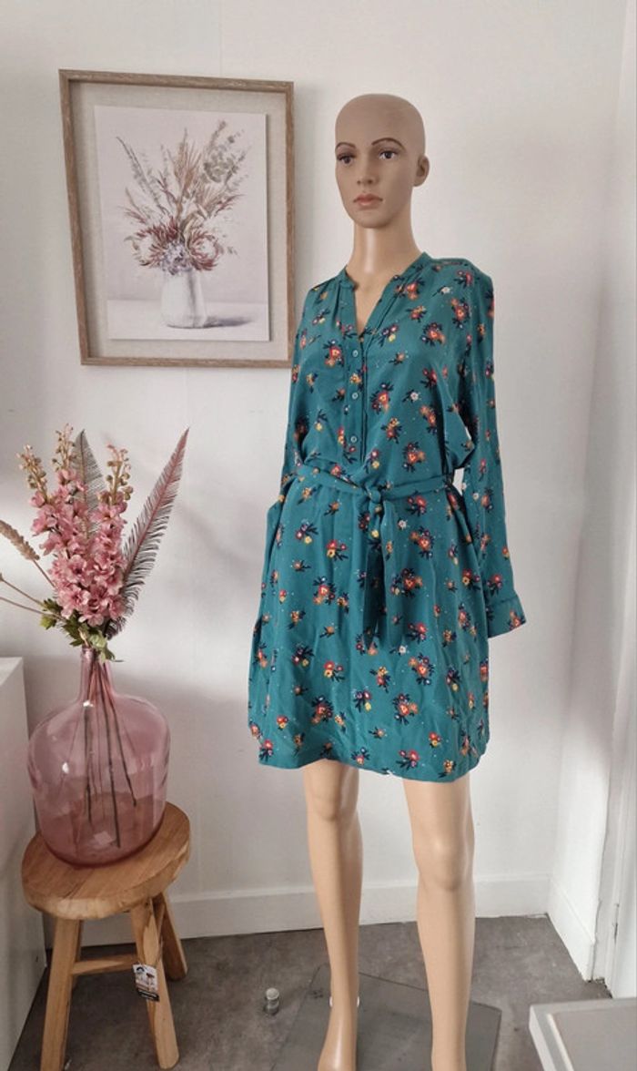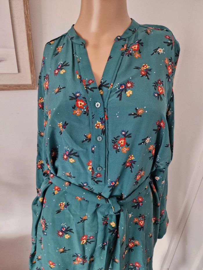 Robe en soie fleuri, femme avec ceinture à nouée COMPTOIR DES COTONNIERS Avec doublure A titre indicatif, le mannequin mesure 1m75 et taille 36