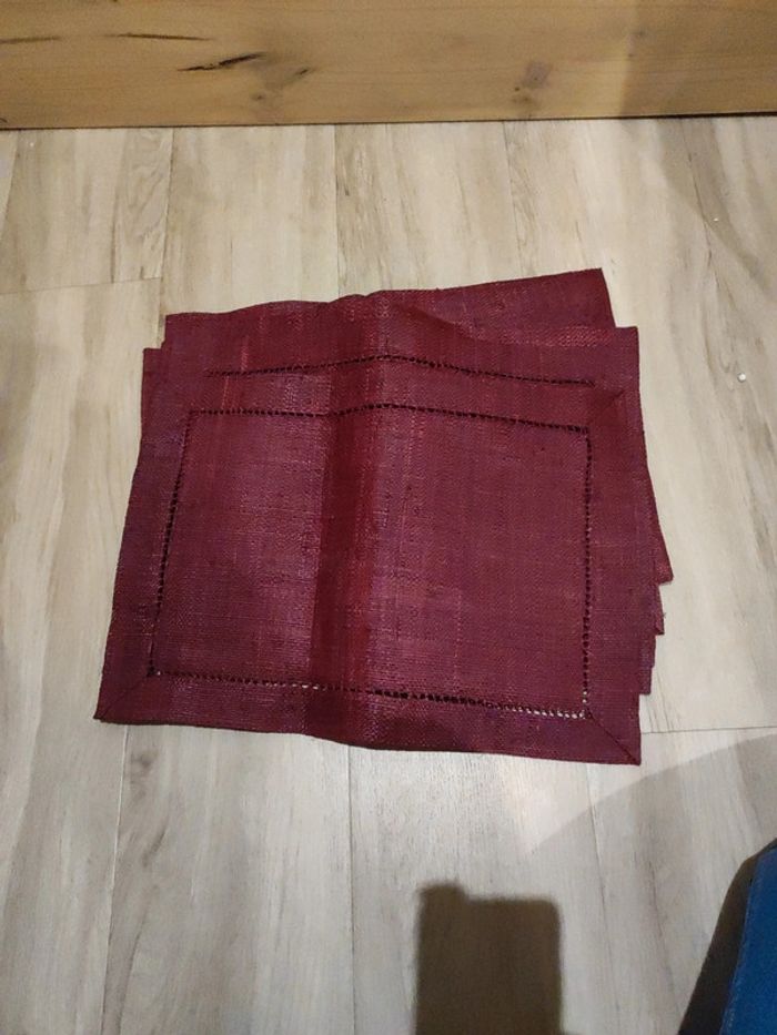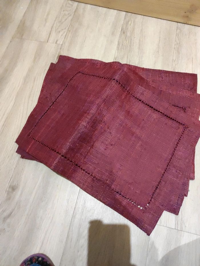 Lot de 6 sets de table made in Martinique En paille ou toile de jute je n'arrive pas trop a déterminer la matière tout neuf Attention un peu plier au centre du au stockage ils seront a aplatir N'hésitez pas à regarder mon dressing j'ai d'autres articles les réductions sont activées 😉