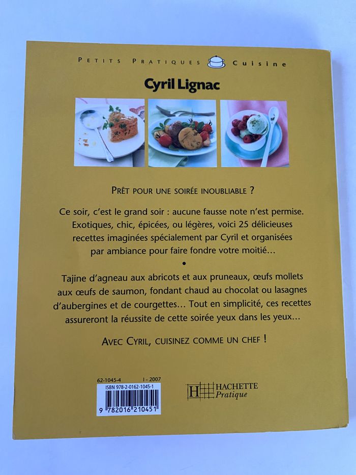 Recettes de dîner aux chandelles par Cyril Lignac. 62 pages avec illustrations.