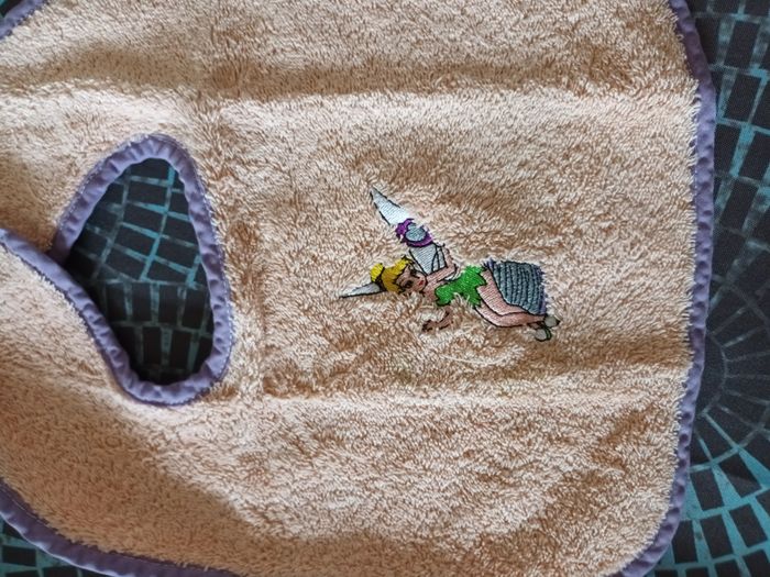 bavoir fille couleur orange corail motif fee clochette tres bon etat