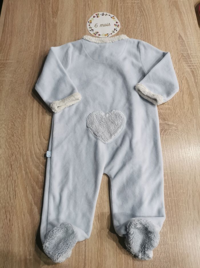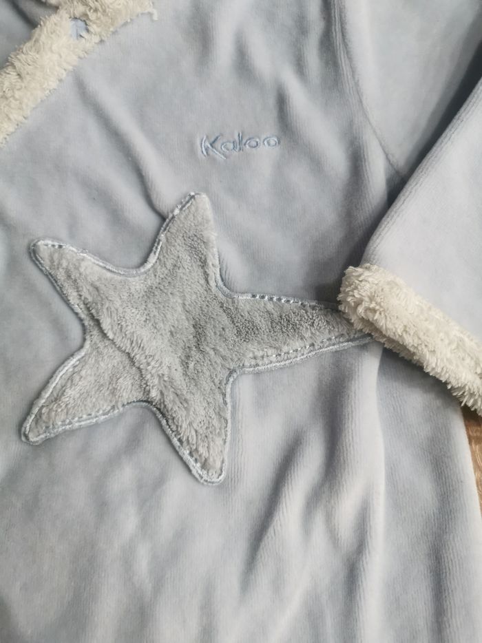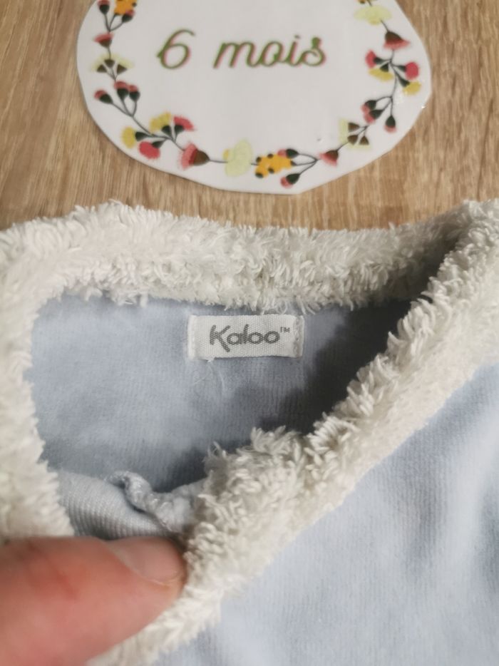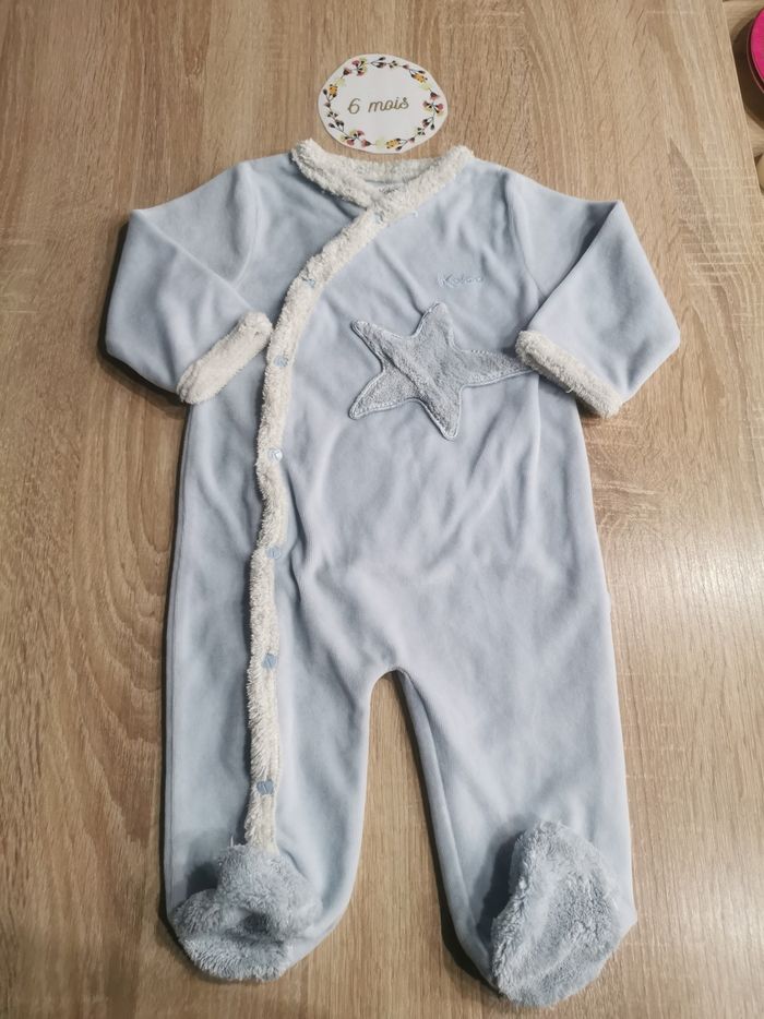 Pyjama mixte en velour bleu ciel en taille 6mois de la marque kaloo. Il a été porté mais reste en tres bon état
