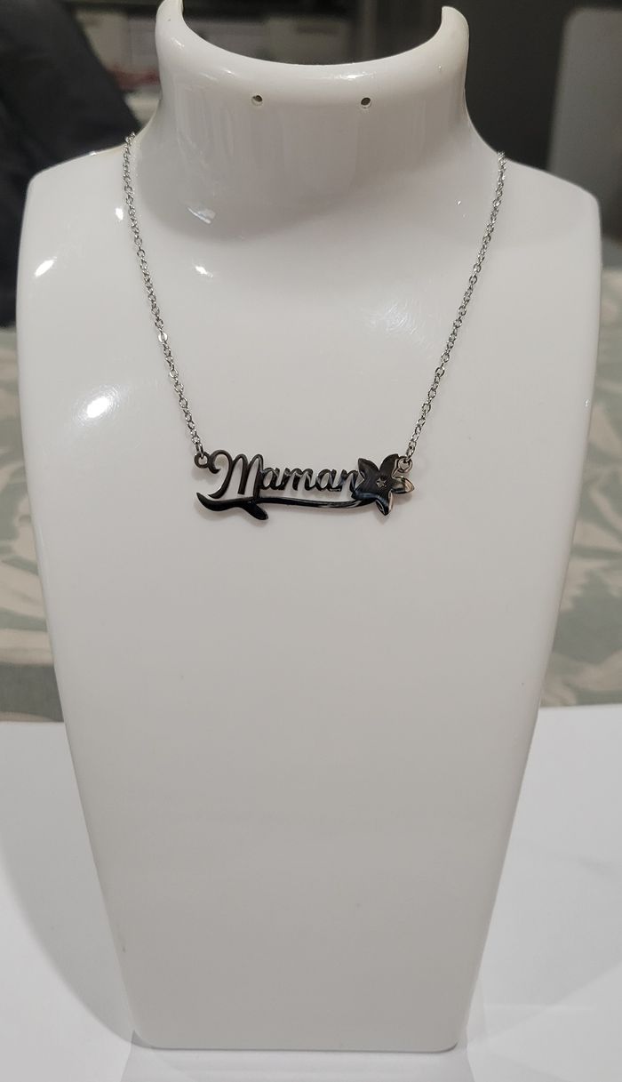 COLLIER INSCRIPTION MAMAN FLEUR ACIER INOXYDABLE ! NEUF ! FETE DES MERES...