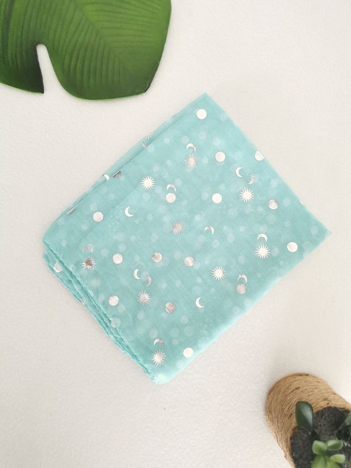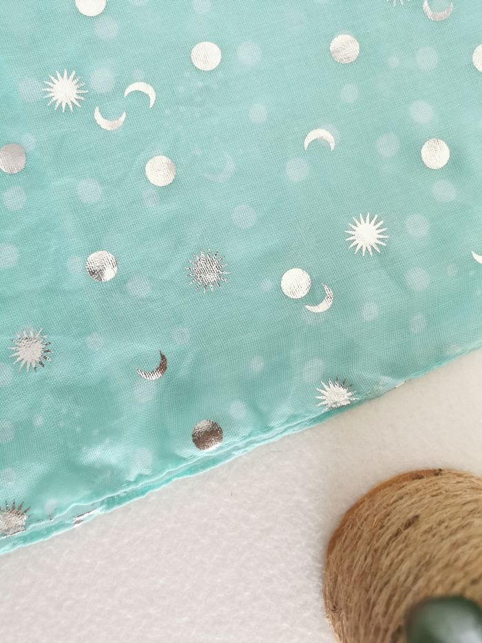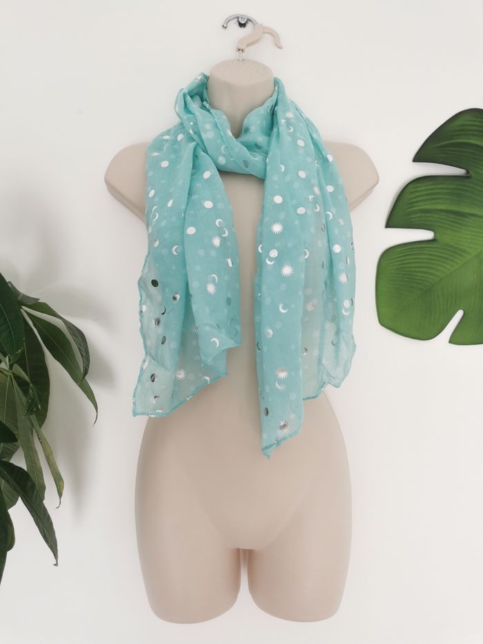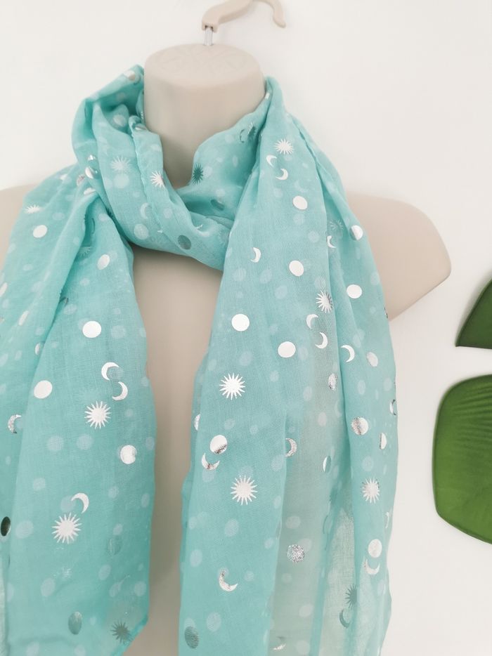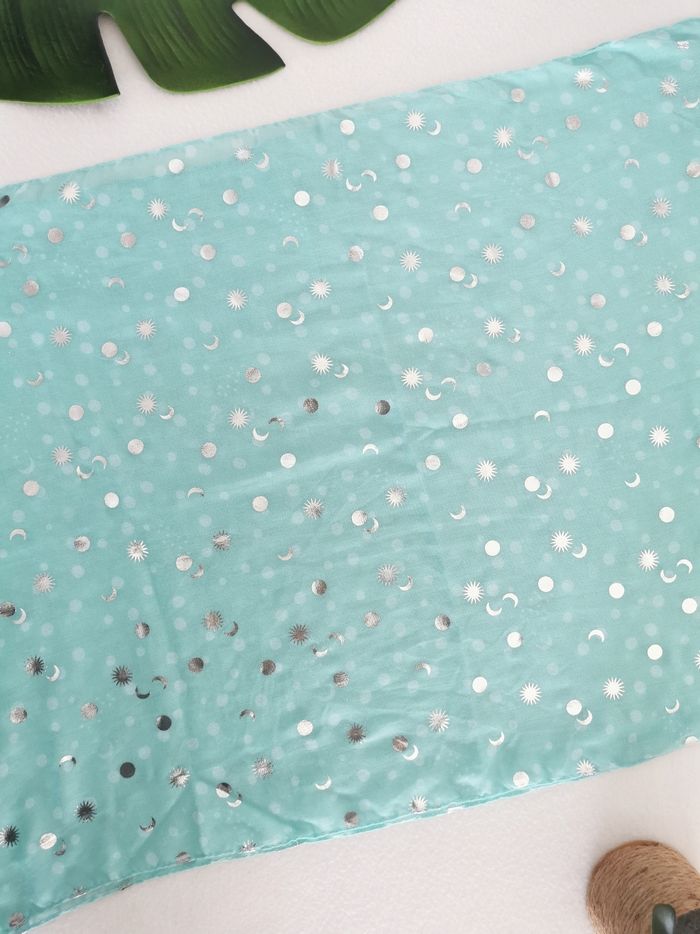 Foulard vert menthe lune et soleil argentés - photo numéro 1