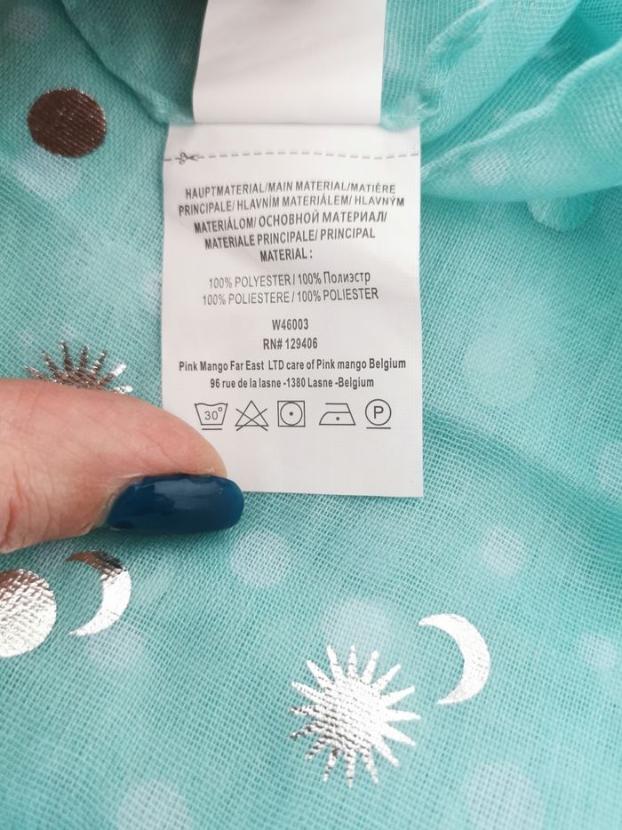 🙎‍♀️ ÉTAT DE L'ARTICLE: 10/10 ✅️ Sans étiquette, jamais porté Foulard vert menthe 🙎‍♀️ • Matière: 100% polyester • Forme rectangulaire • Motifs lune 🌙🌕🌙 et soleil ☀️☀️☀️ argentés • Couleur: Vert 🟢 menthe • 📏 Dimensions: 49 X 160 cm Parfait état👌, jamais porté ⬛