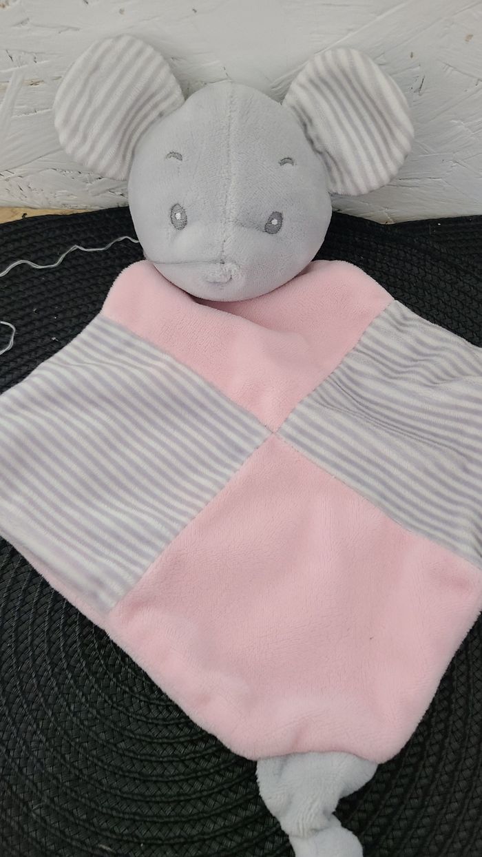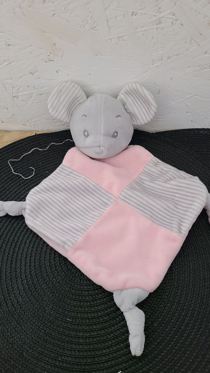 Doudou plat souris rose gris rayé TOM & KIDDY TOMKIDS