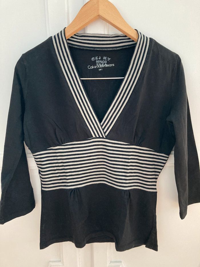 blouse en coton manche 3/4 décolletée peu portée, en très bon état