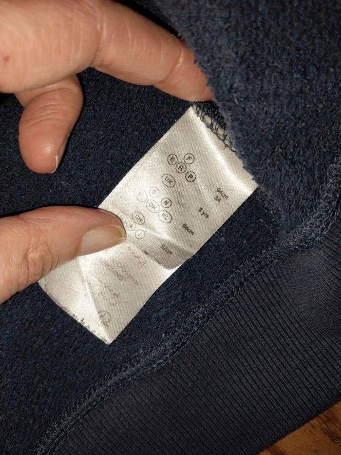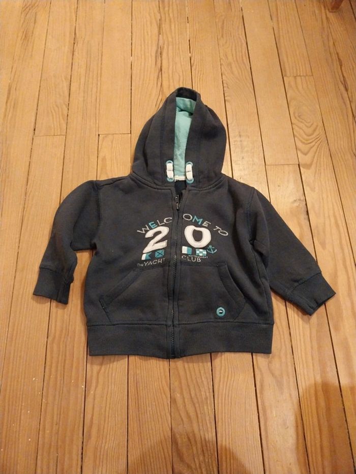Sweat zippé à capuche bleu marine de la marque Vertbaudet. Porté mais encore en bon état. #mariesouc_garçon36mois
