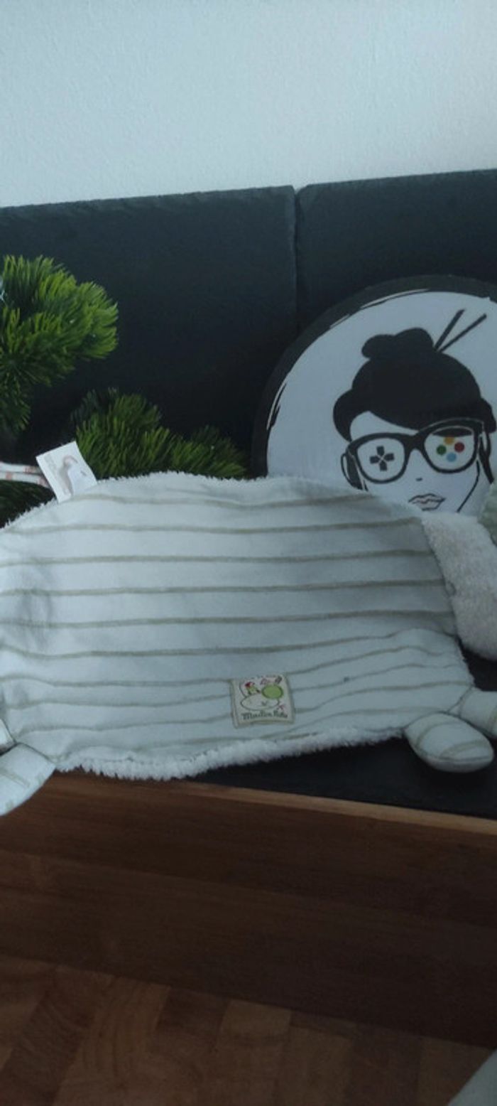 doudou mouton plat moulin roty koko la lune beige rayé rayure gris beige Laine - photo numéro 2