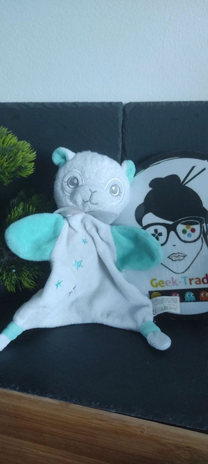 doudou tom et Zoé lama blanc vert étoiles collerette gris - photo numéro 1
