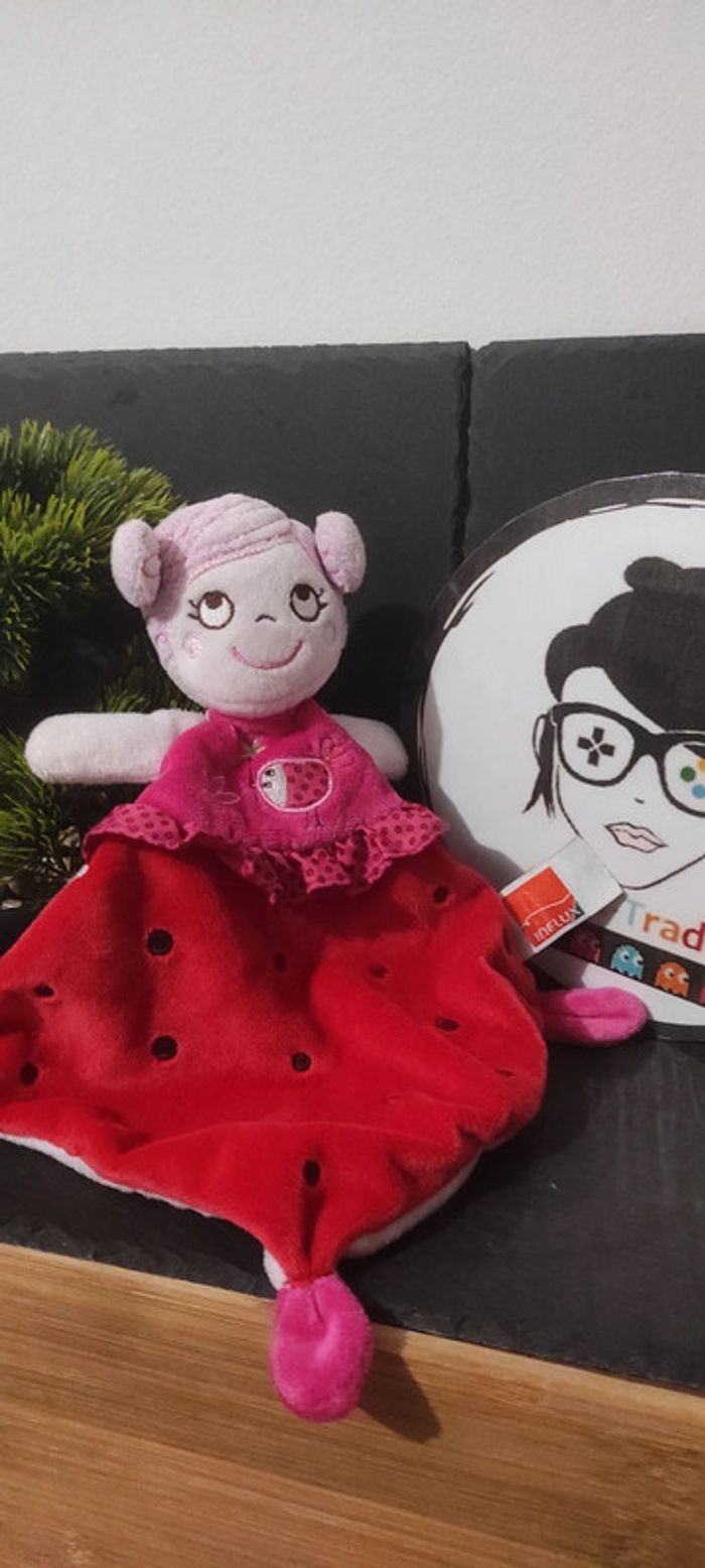 doudou fille influx rouge pois noir oiseau étoile rose vert dentelle Fleur Rond - photo numéro 1