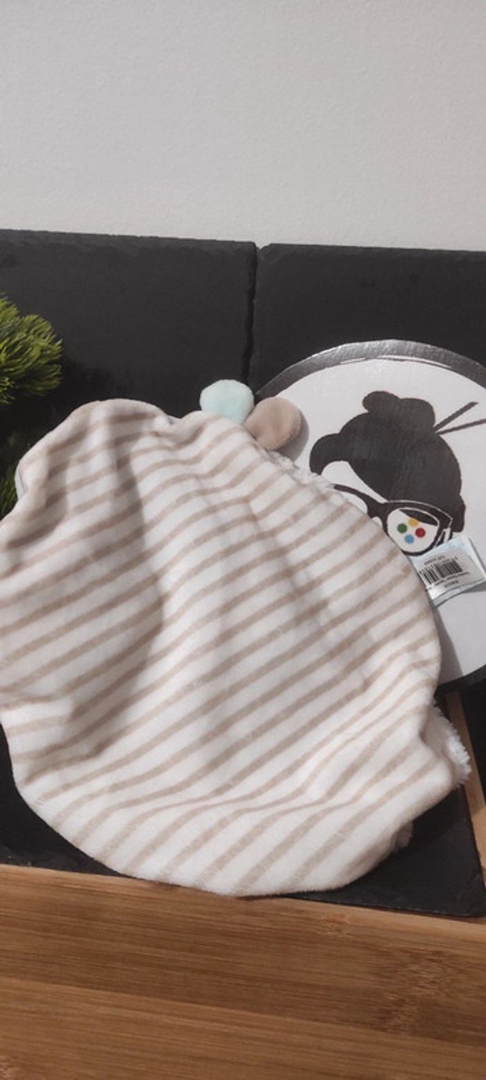 Doudou Ours Plat Rond Bleu Blanc Vert Les Tendres layette bn0105 beige bonnet rayé rayure