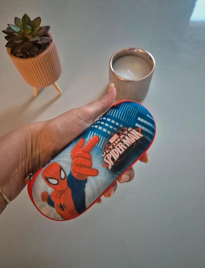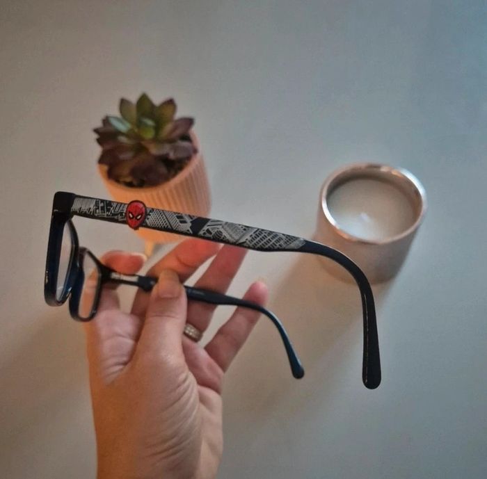 Lunettes de vue Spiderman Dans leur étui qui se ferme avec une fermeture eclair Les Lunettes sont en bon état général mais il y a une cassure sur une branche voir photo L'étui présente quelques tâches Il y a des verres de repos, il suffit de changer les verres à la vue de votre enfant #virginie2220fournituresscolaires #virginie2220livres #virginie2220divers