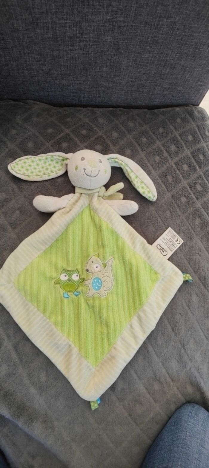 Doudou Lapin Losange Vert mots d enfants Tbe 15 euros Envoi en relais