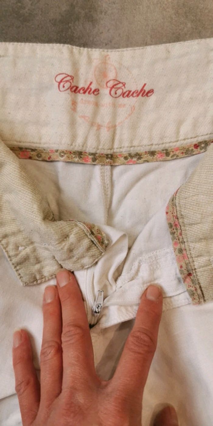 Pantalon en lin blanc taille 40 Cache cache Très bon etat Légèrement abimé en bas sur un pli ne se voit pas porté