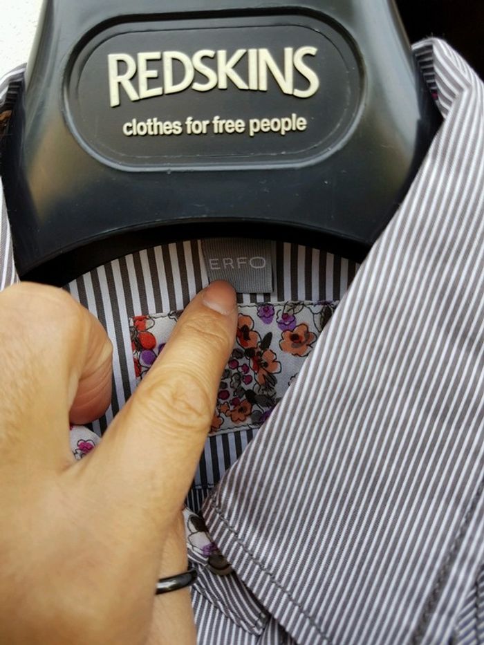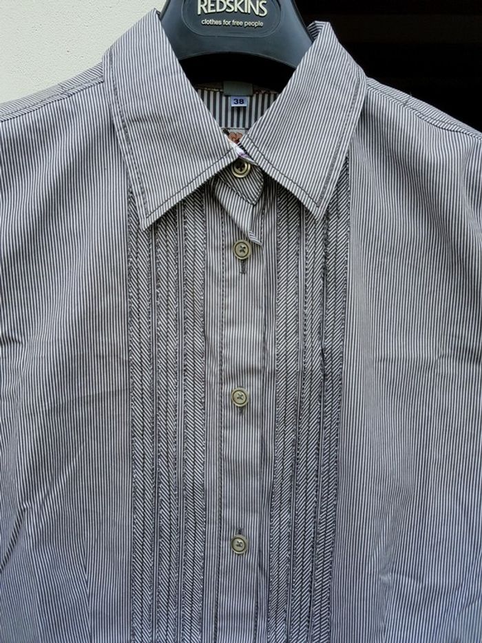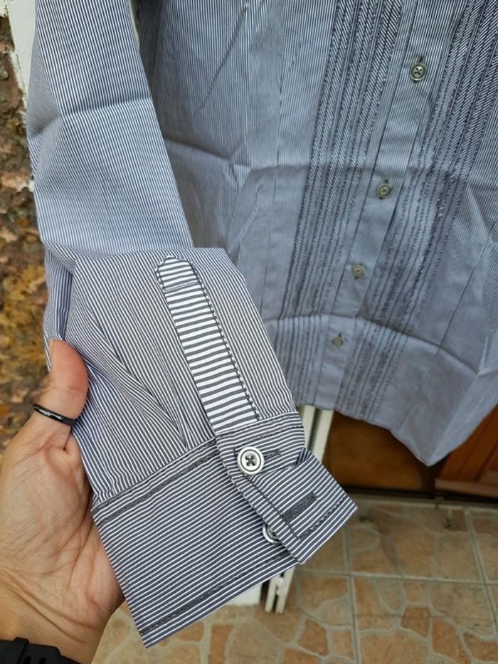Jolie chemise rayée gris taupe-blanc ERFO - T. 38 - photo numéro 5