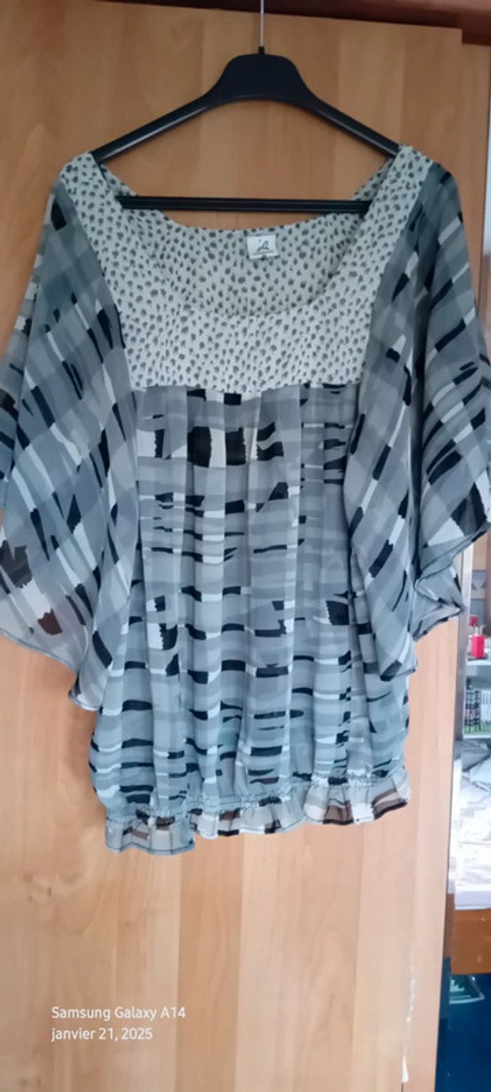 Blouse semi transparente manches chauve souris motif abstrait gris femme 46 Jacqueline Riu