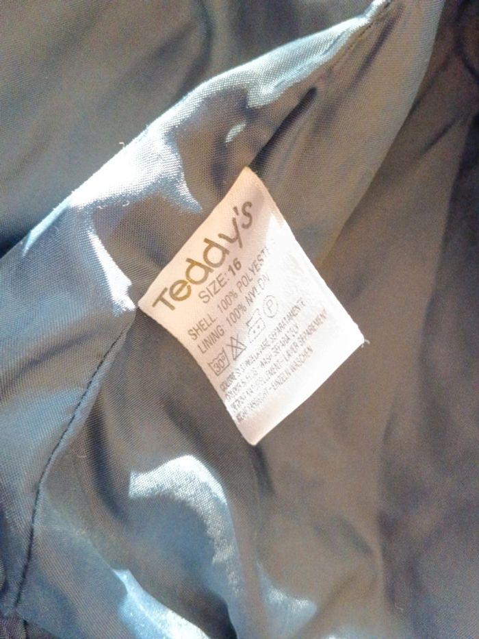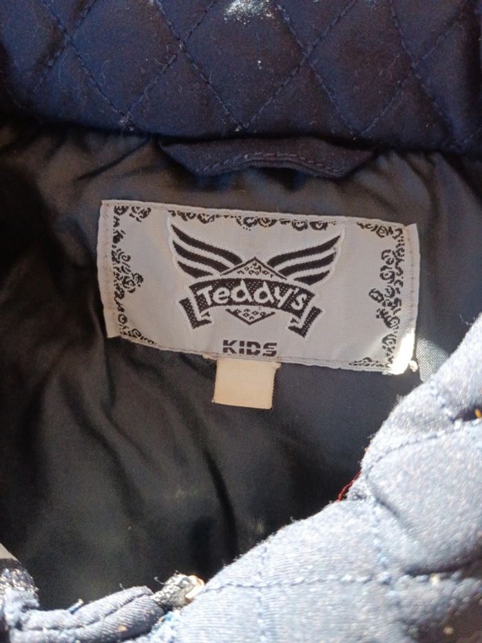 Veste matelassée marine Teddy's Taille indiquée 16 ans convient à 36/38 à confirmer avec les mesures. Fermeture par fermeture éclair et pressions. Epaules 47cm Aisselles 55cm Longueur 68cm