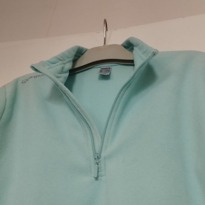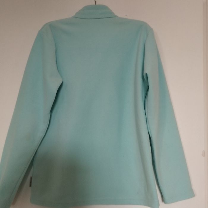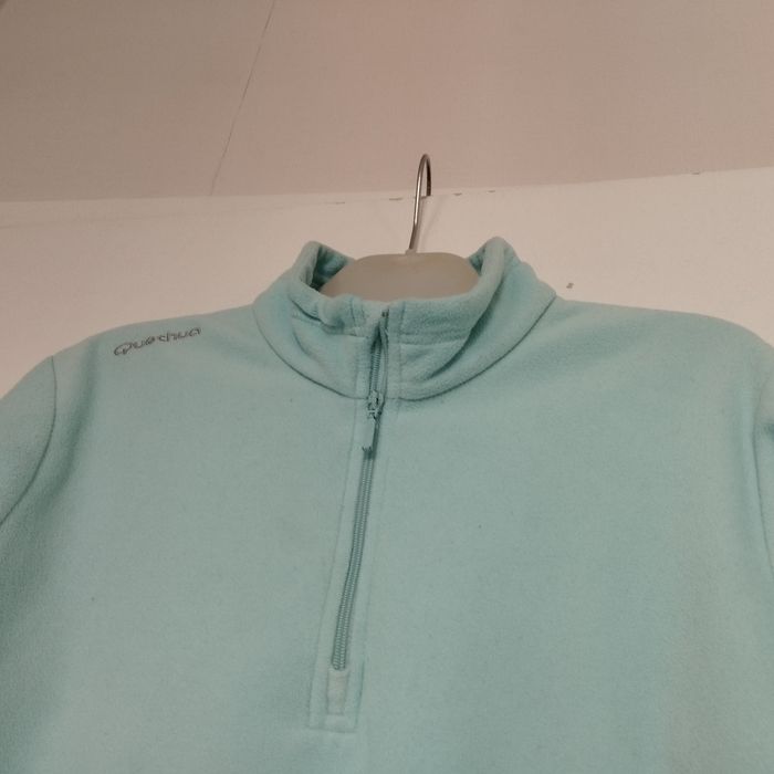 Pull polaire pour enfant de 12 ans, de chez Décathlon, coloris turquoise, Très doux et chaud, fermeture éclair au col.