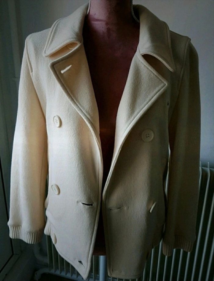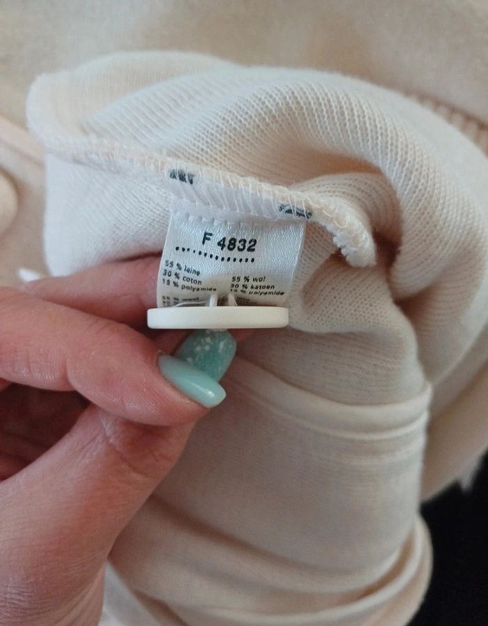 Authentique Lacoste en laine (55%), couleur crème. Portée une ou deux fois, comme neuve Mi saison, noté veste polaire car en laine mais elle n'est pas aussi chaude. Convient plutôt à une femme < 1m70 car veste assez courte (je fais 1m68) Pour d'autres articles en 38, n'hésitez pas à cliquer #sabristou_t38 -> réductions activées Largeur entre aisselles 45 cm Longueur épaule - bas veste = 57/58cm. longueur manche (aisselle/bas manche) = 39 cm