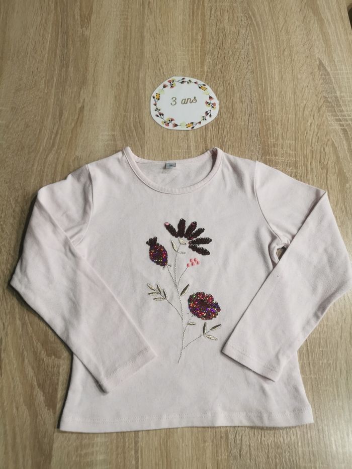 Ensemble fille en taille 3 ans composé: ✅Veste noire pailletée 3ans kiabi tbe ✅T-shirt rose à manches longues à sequins en très bon état ✅Pantalon noir tissaia porté mais reste en tres bon etat general