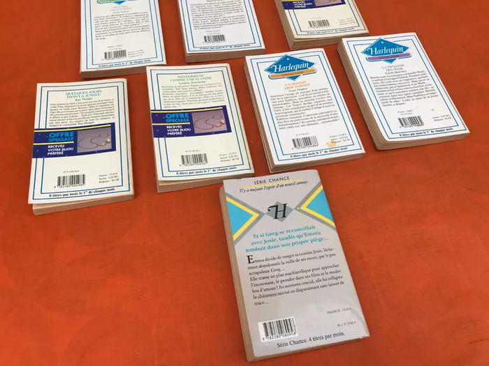 (article vendu en l' état, état d' usage voir toutes les photos) Lot de 7 Harlequin + 1 bonus Harlequin Série Chance " Collection Harlequin " Années 1987 N°753 N°784 N°792 N°794 N°796 N°707 N°737 + 1 bonus Harlequin Série Chance N°96 Poids total : 765grs
