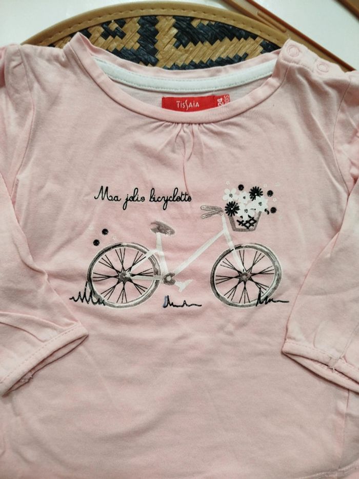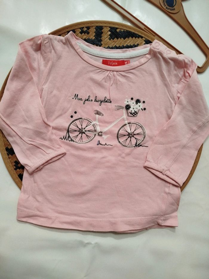 - T-shirt manches longues maillot de corps rose clair imprimé bicyclette