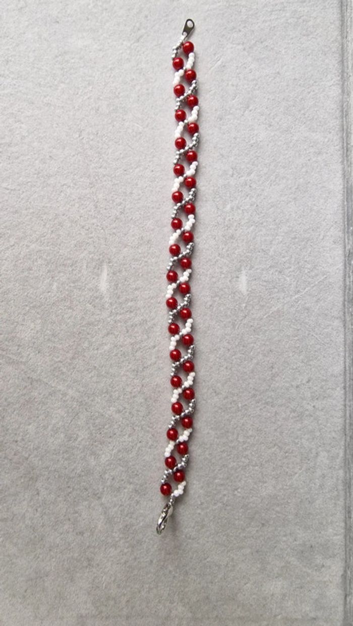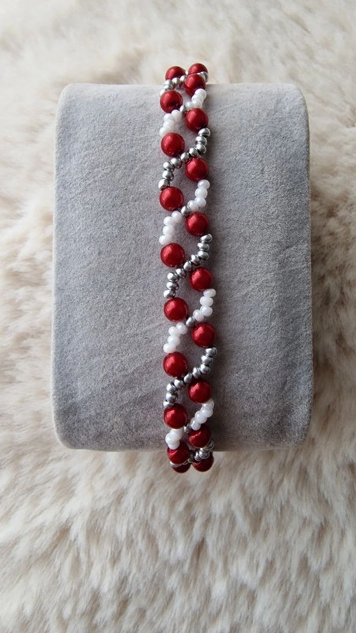 Bracelet en perles argenté, rouge et blanc nacré idéal pour Noël/fêtes de fin d'année Marque Crystalia Perles comme neuf Taille 17cm #Noël #braceletfetes #perles&co
