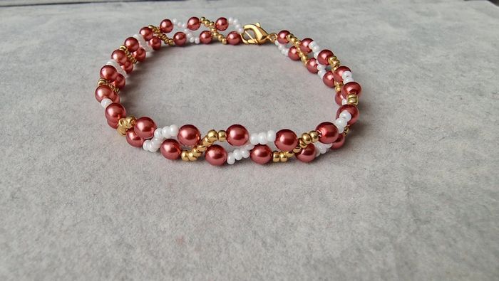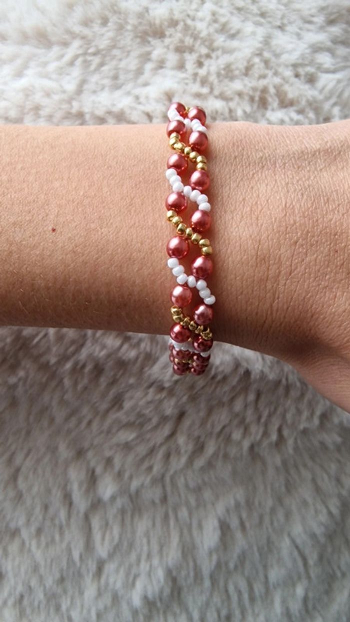 Bracelet en perles rose antique blanc nacré et doré Marque Crystalia Perles comme neuf Taille 18,5cm #perles&co #braceletfetes