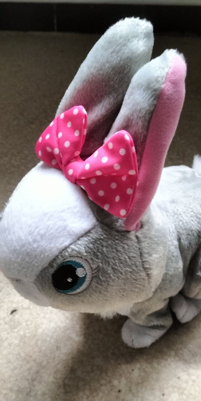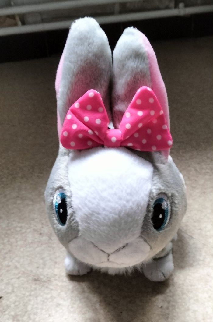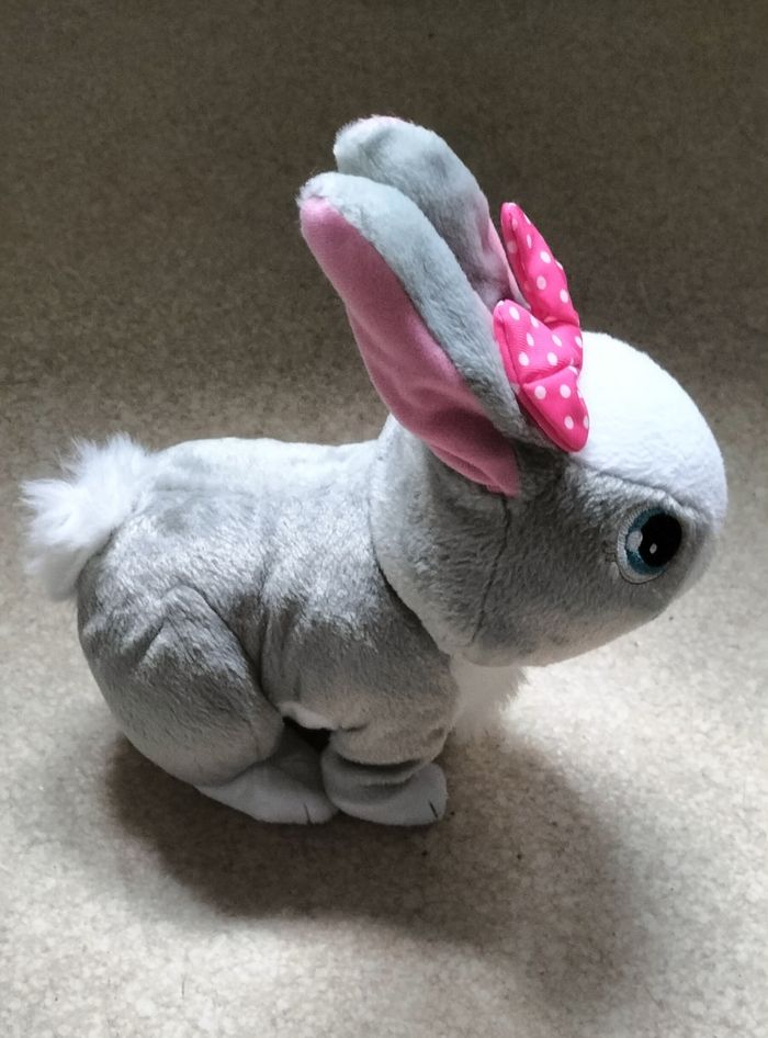 Betsy est une adorable petite lapine qui fait des sons amusants. Cette peluche interactive saute bouge les oreilles comme une vraie petite lapine et elle adore quand vous la caressez. Très bon état Marque IMC toys 10€