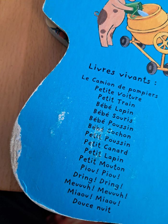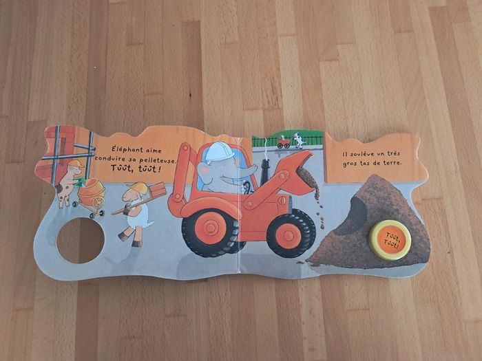 Bon état, 8 pages, 14cm x 18cm. Le klaxon fonctionne encore un petit peu, il fait un bruit de moteur. Je n'ai pas trouvé la manière de changer la pile. Livre un peu abîmé voir photos.