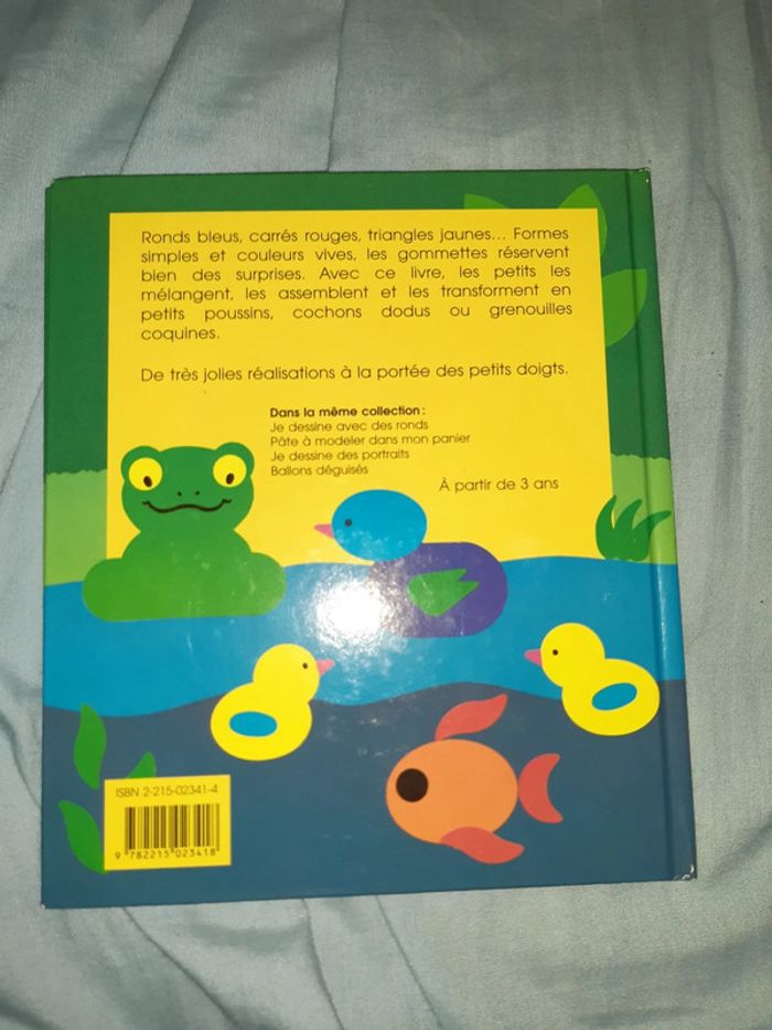 Livre explicatif sur comment faire des animaux et autres objets avec des gommettes. Les gommettes ne sont pas fournies avec. Livre de 22 pages. À partir de 3 ans.