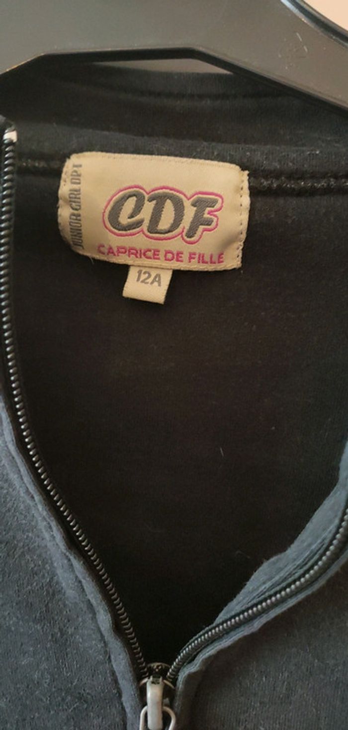 Gilet zippé fille noir Taille 12 ans Marque Caprice de fille 2 poches avant avec fermeture éclair Petite étiquette décousue, faire un point où a couper. Peu porté