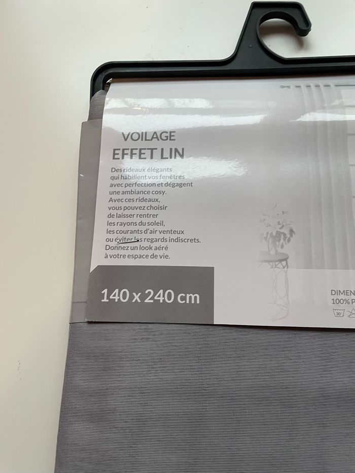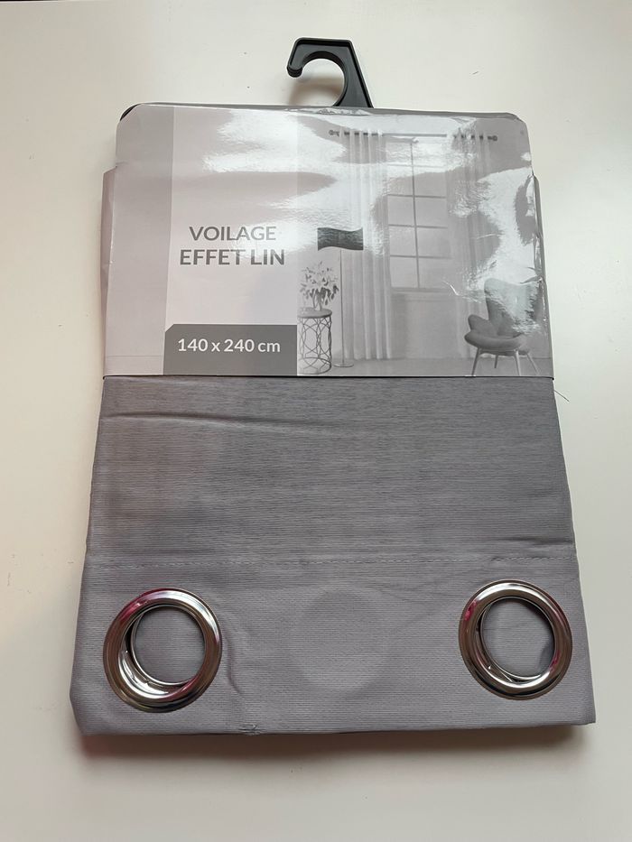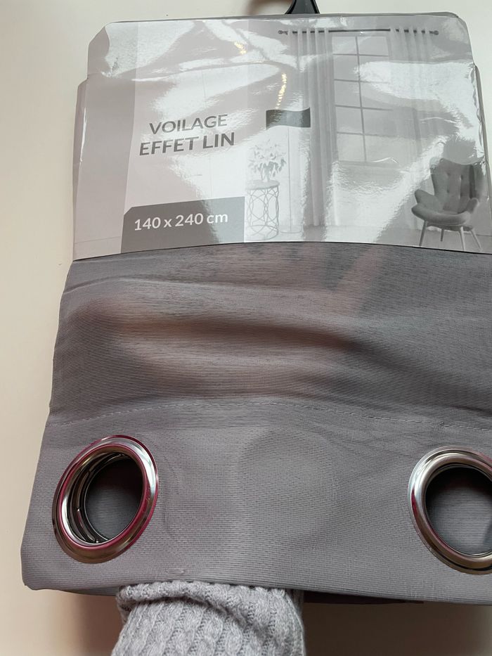 Voilage gris effet lin NEUF dans son emballage d’origine ✨ La transparence est visible sur la deuxième photo ⚠️ Un seul disponible 📏 140x240