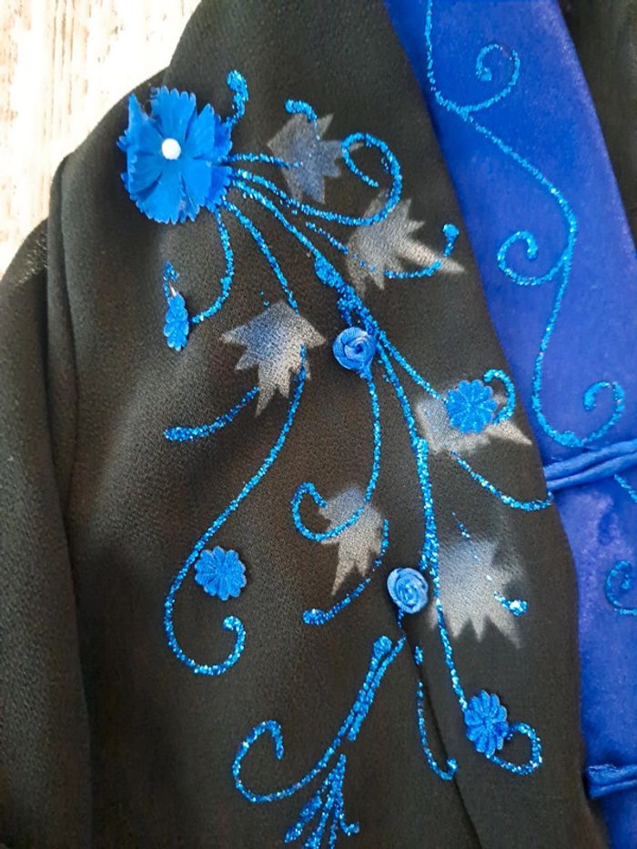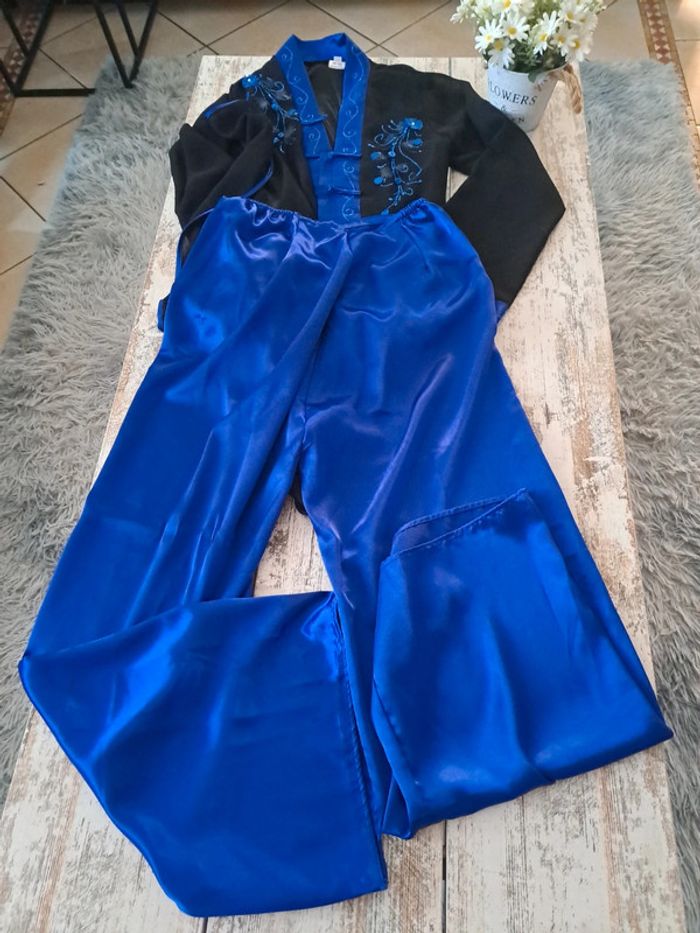 Pantalon et. Chemise brodé pailletée et fleurs à perles blanches Très peu porté