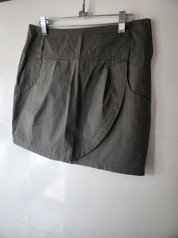 Jupe courte kaki style portefeuille toile Naf Naf - photo numéro 1