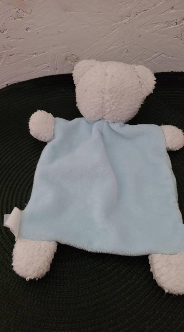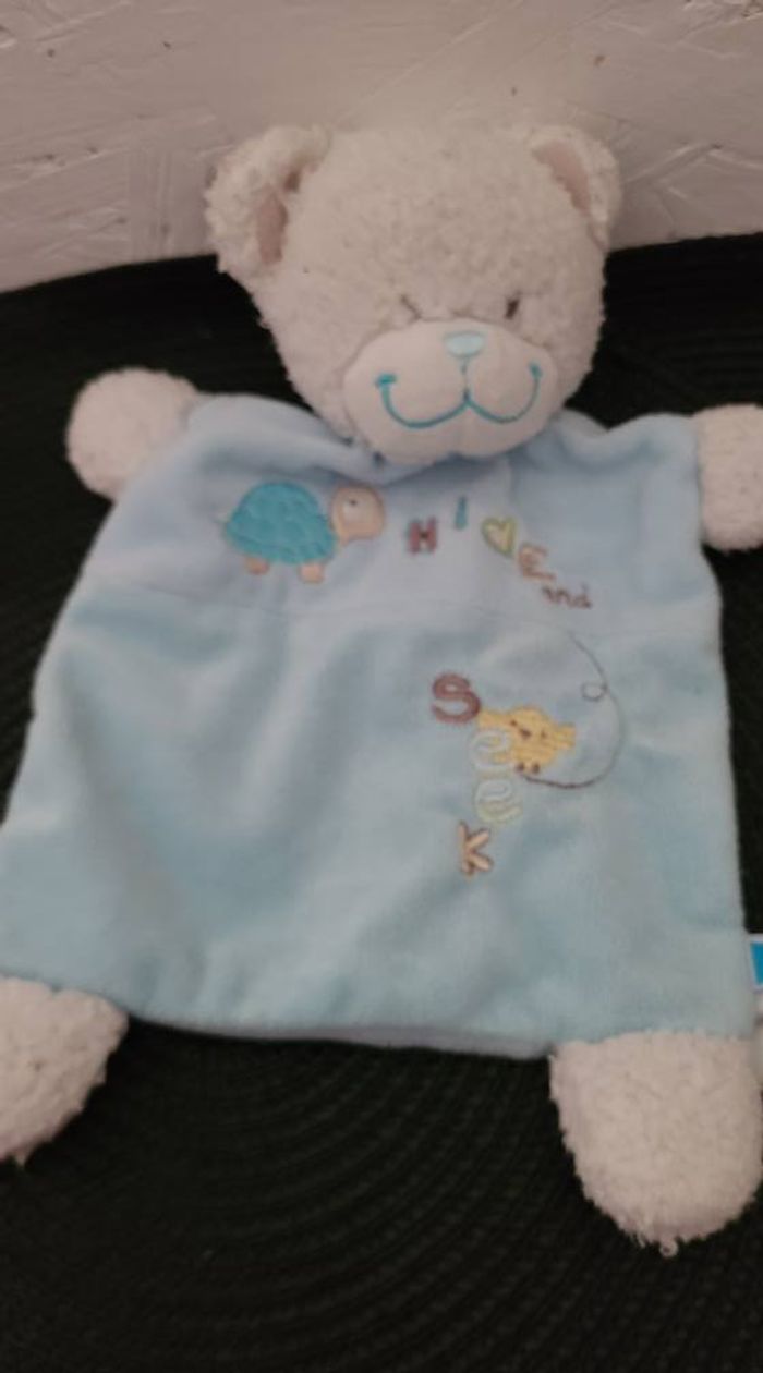 doudou plat ours blanc bleu brodé tortue - photo numéro 1