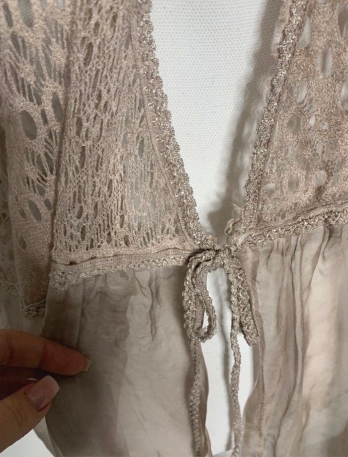 Cardigan long sans manche en crochet et voile beige sable bohème Y2K TU - photo numéro 6