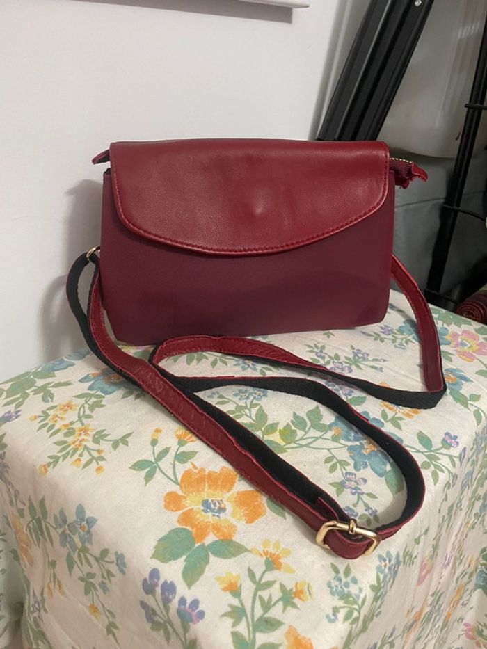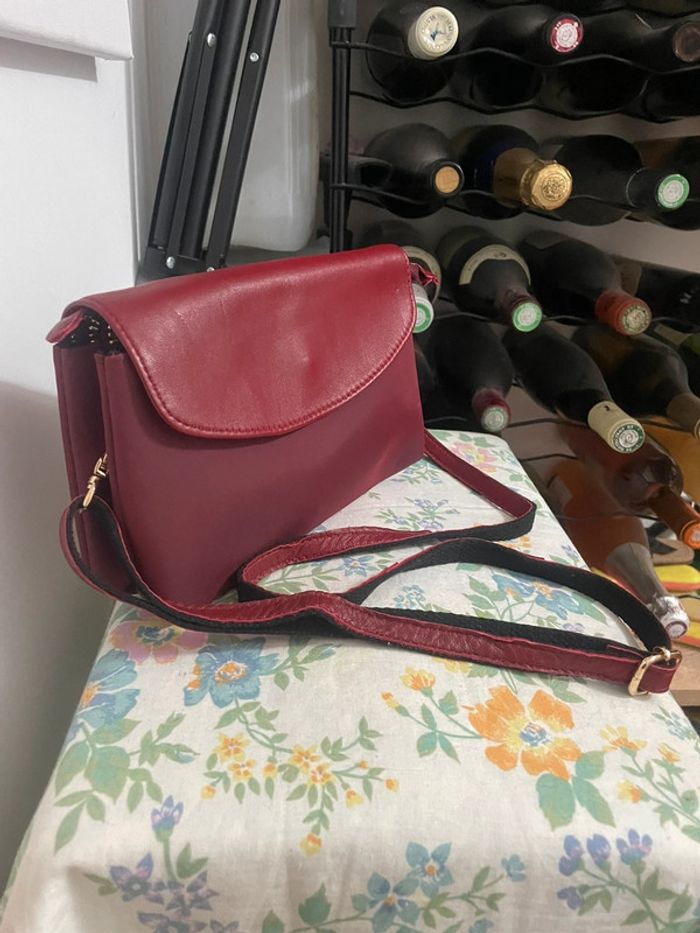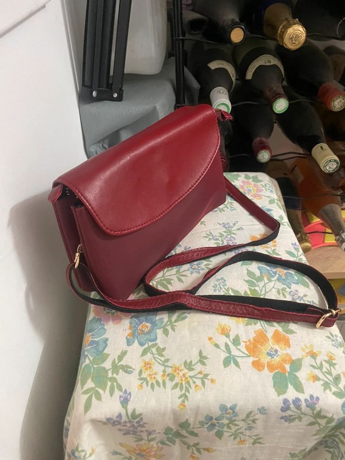 Sac à épaule en cuir de vache authentique rouge - photo numéro 1