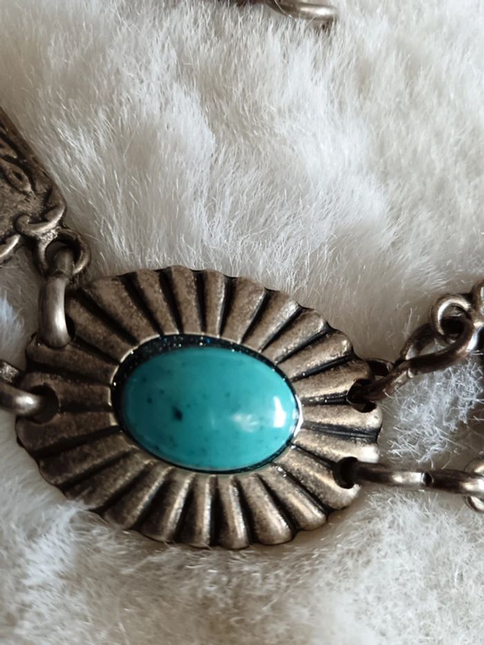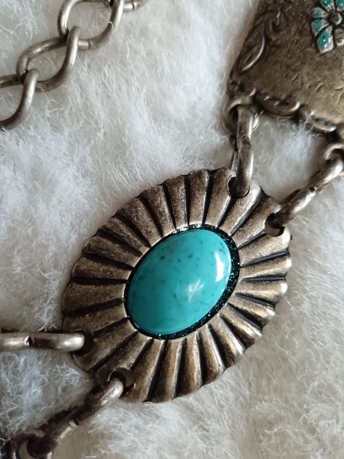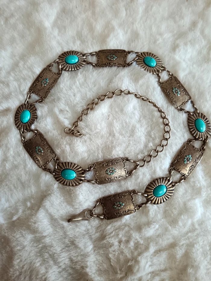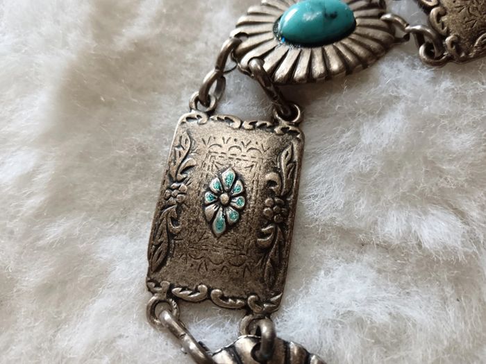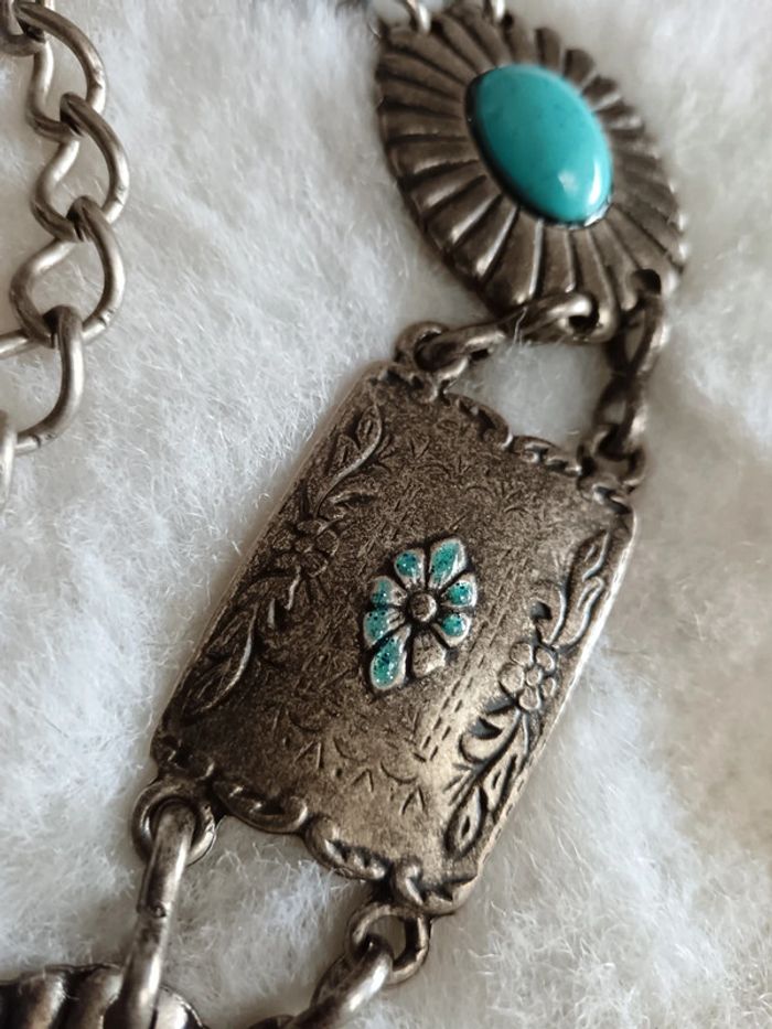 Ceinture vintage concho en métal (étain ?) et turquoise. En excellent état Ajustable #calmaccessoire #ceintureconcho #ceinturechaine