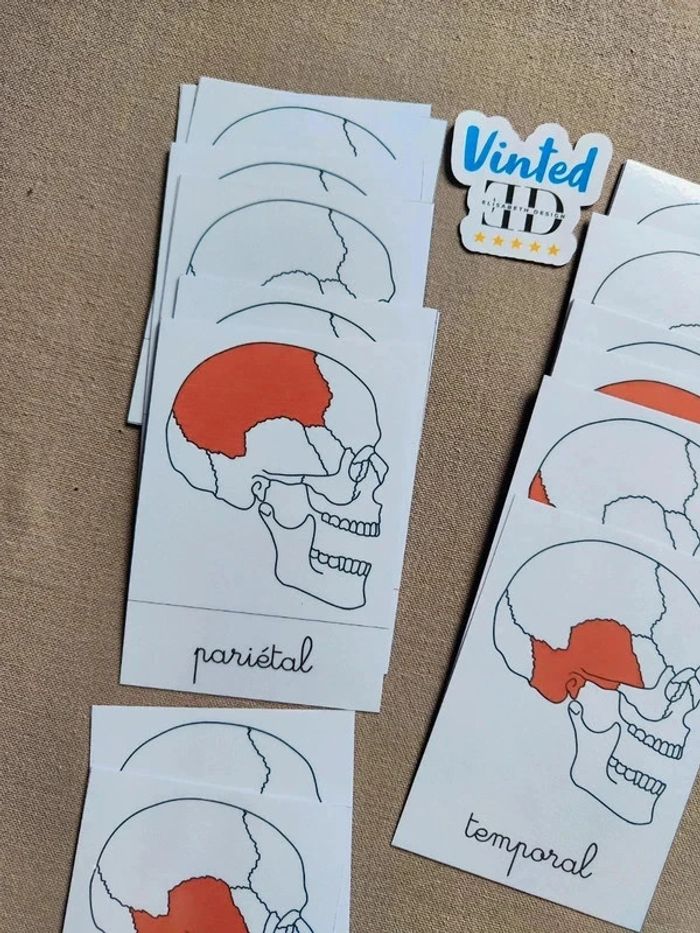 📍24 Cartes de nomenclature des os du crâne. 📍Papier 250G plastifié pour une bonne tenue ! 📍Neuf. 👉Pour trouver d'autres activités c'est par ici : 🔎#elisabethdesignCorpsHumain 🔎#elisabethdesignNomenclature 📫⏳ Envoi rapide et soigné le jour même de l'achat dans la mesure du possible! 🤝 Frais de port ajusté au plus bas.