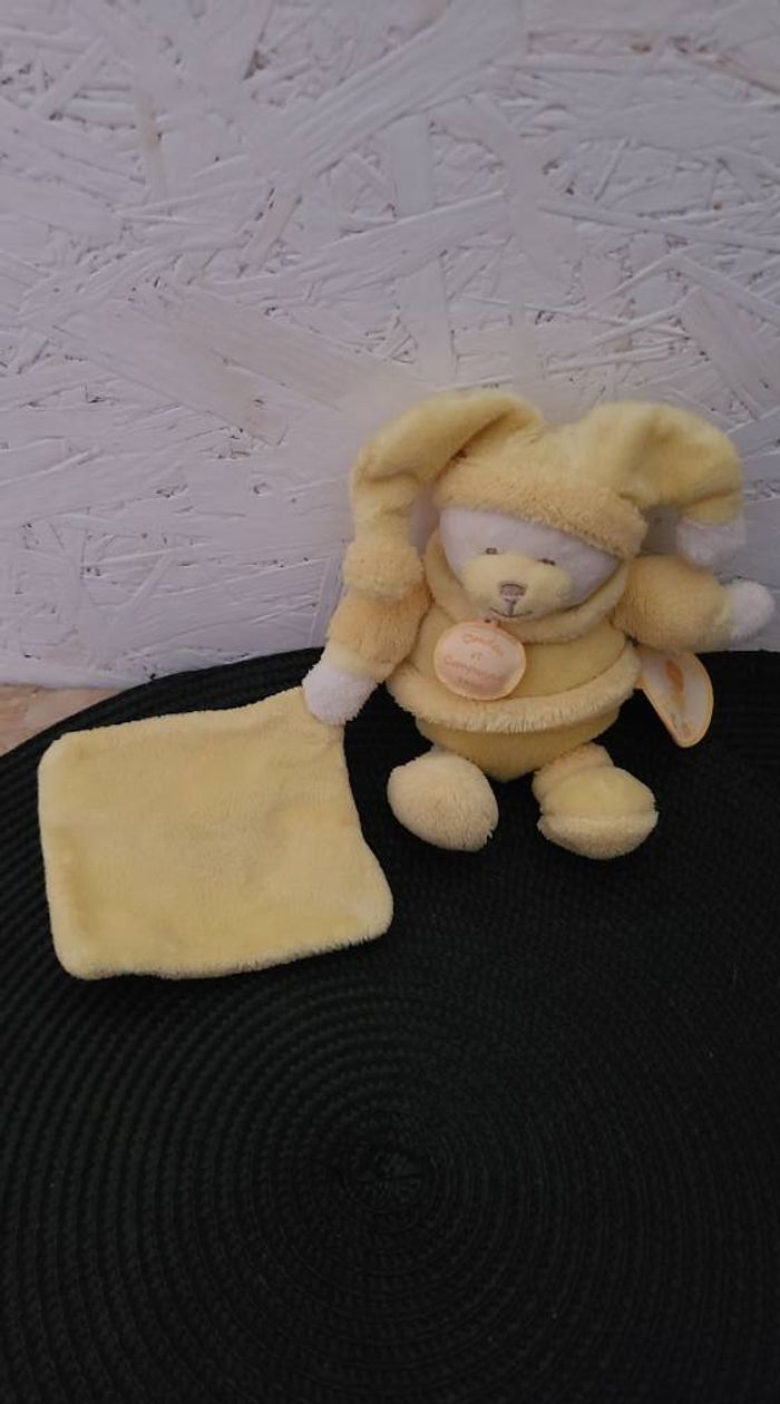 DOUDOU ET COMPAGNIE - Doudou OURS jaune Douceur Macaron Pantin Peluche - H 18 cm - photo numéro 1