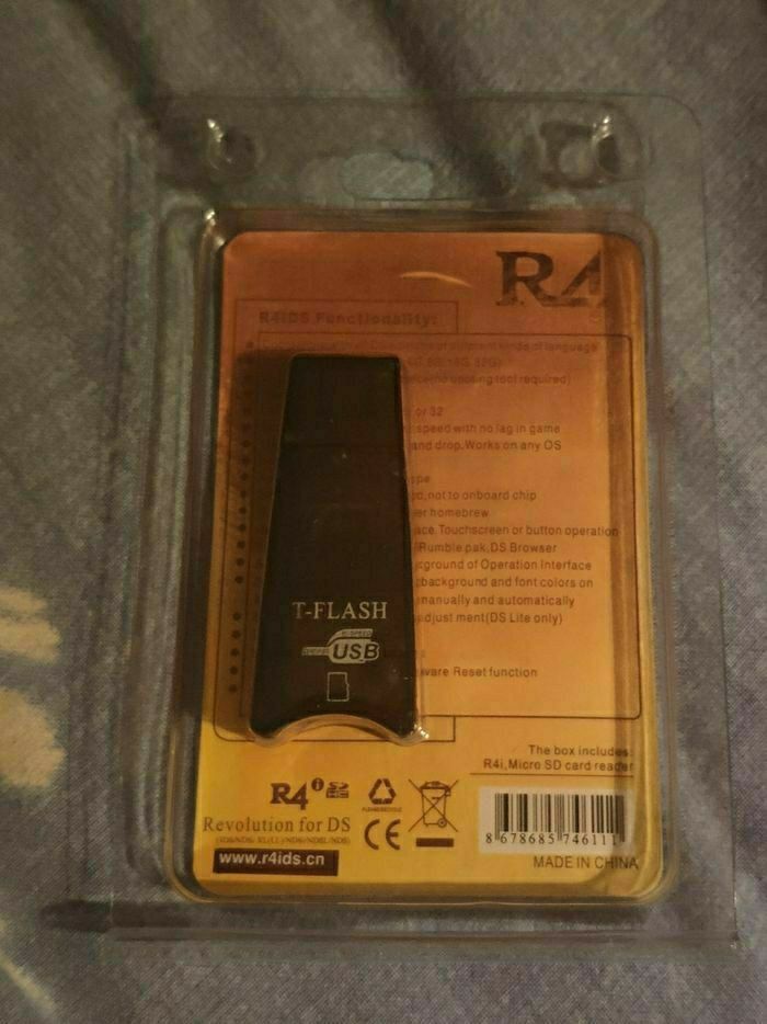 R4i Gold pour Nintendo DS avec une carte SD contenant 190 jeux dont des Mario, Sonic, Sims, Pokémon, etc. adaptateur sd/USB fourni. Fonctionne sur DS tank, DS Lite, DSi 1.4.3, mais ne fonctionne pas sur ma 3DS v2.0.0.E. Console non fournie. Envoi rapide et soigné depuis la France.