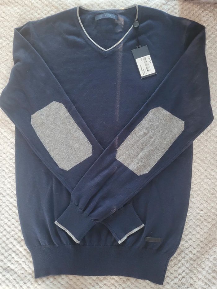 Pull neuf Izac col v marine