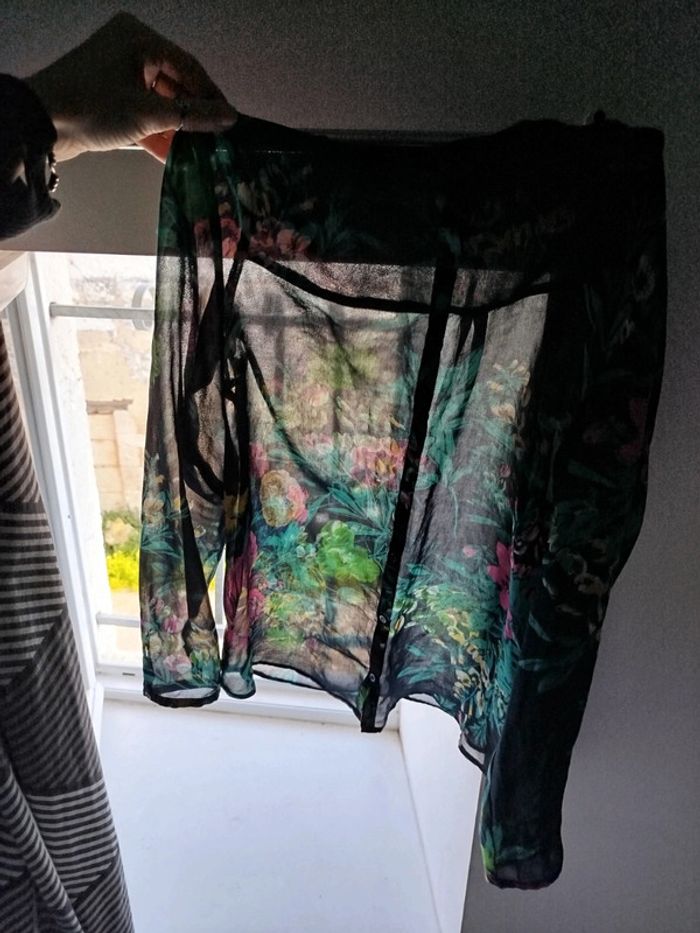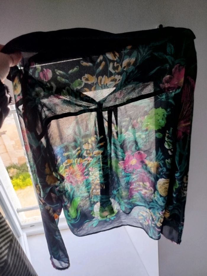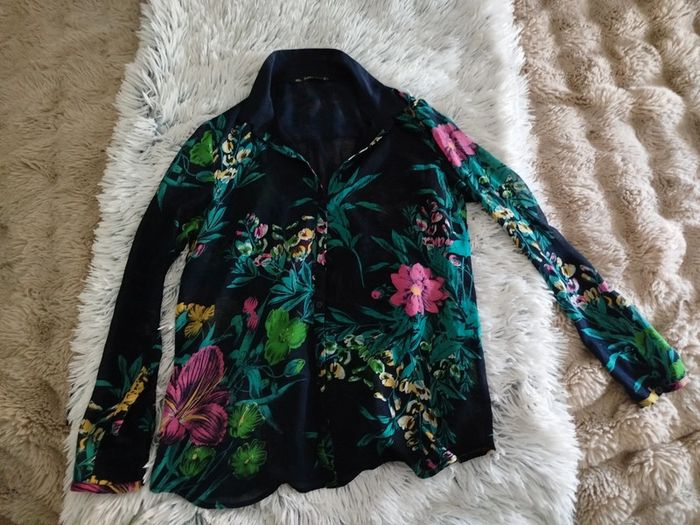 Chemisier fluide, transparent et fleuri. zara taille L. Comme neuf peu porté.